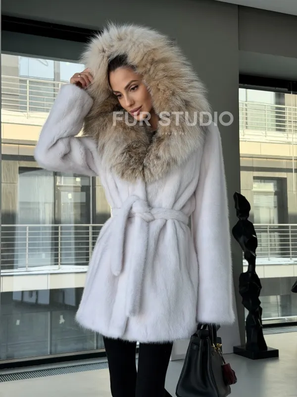 Белая шуба с капюшоном из рыси доступна для покупки в нашем шоуруме Furs Studio в . У нас так же есть доставка во все города России. Добавьте немного роскоши в свой гардероб с этой шубой, которая будет служить вам многие годы.
