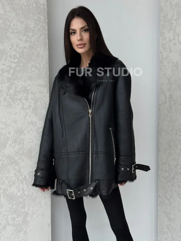 Черная дубленка - авиатор на тоскане. Модель предлагается в размерах от 42 до 58. Оптимальная длина моделей 85-90 см подчеркивает линии вашей фигуры. Эта дубленка станет неотъемлемой частью гардероба для тех, кто предпочитает роскошь и утонченность натуральной кожи.