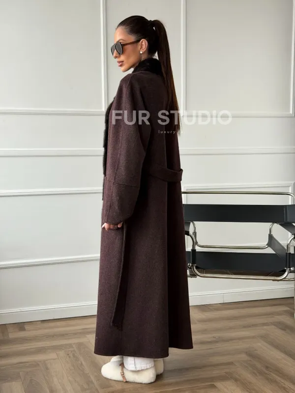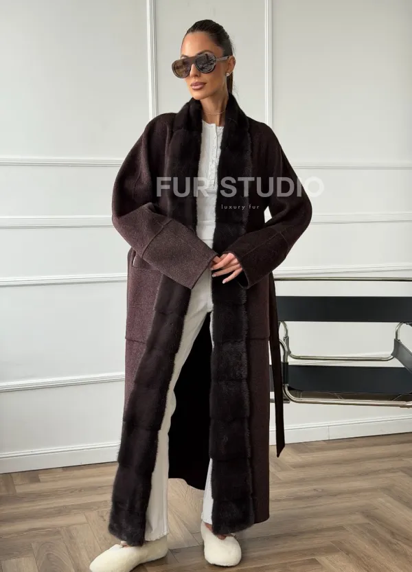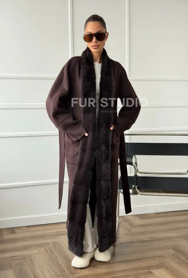 Длинное демисезонное пальто с мехом норки 102673