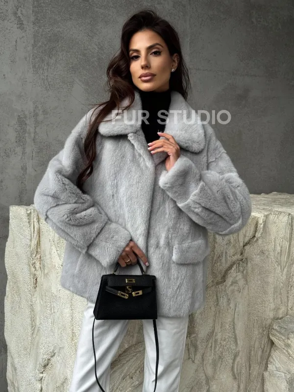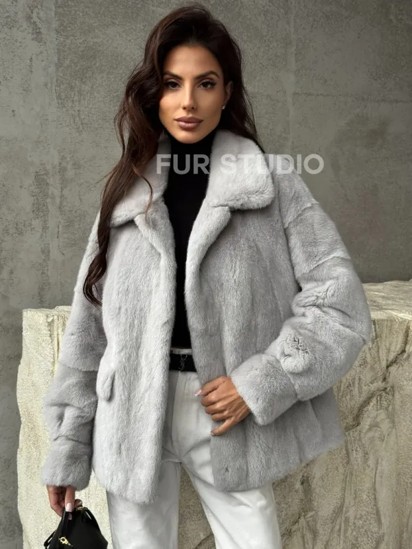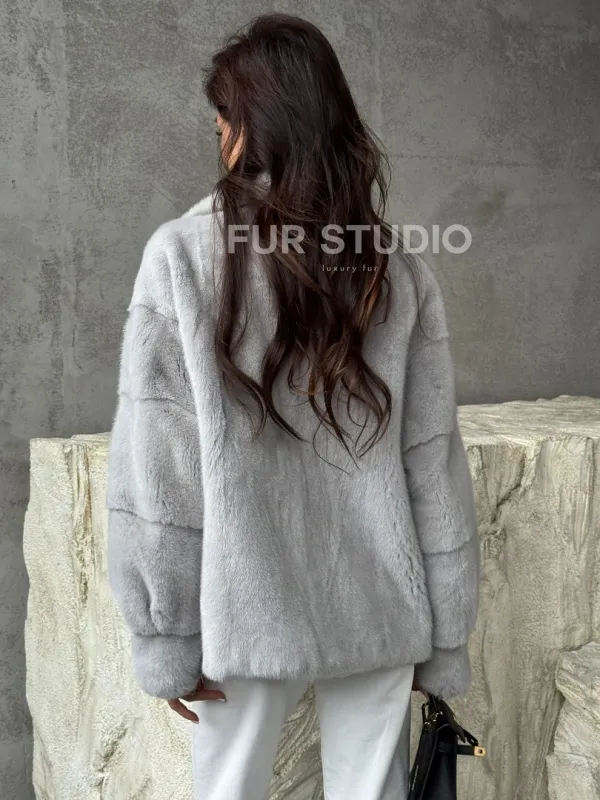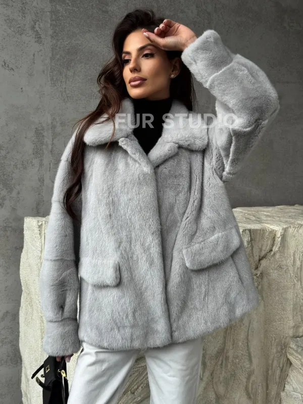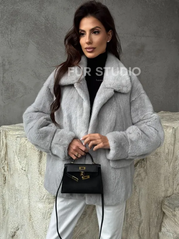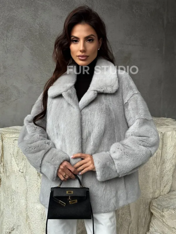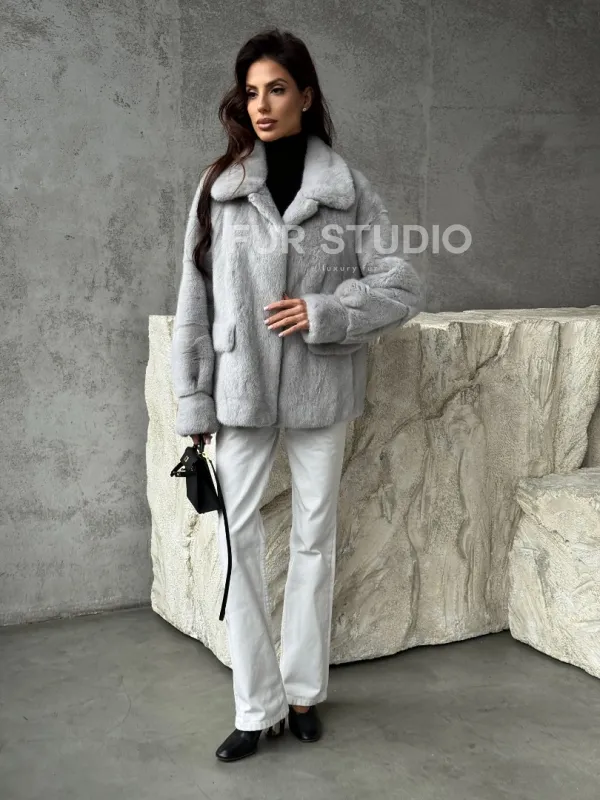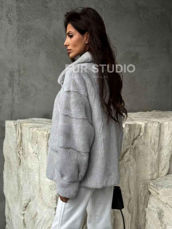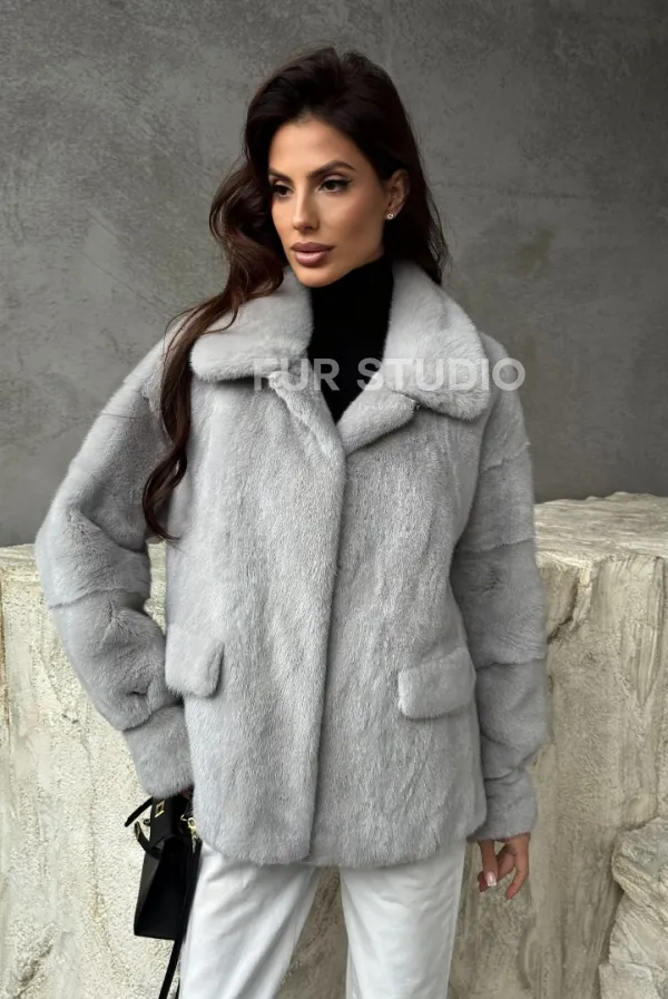 Голубая норковая шуба 102468
