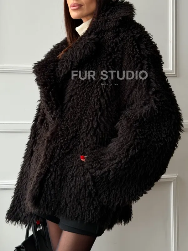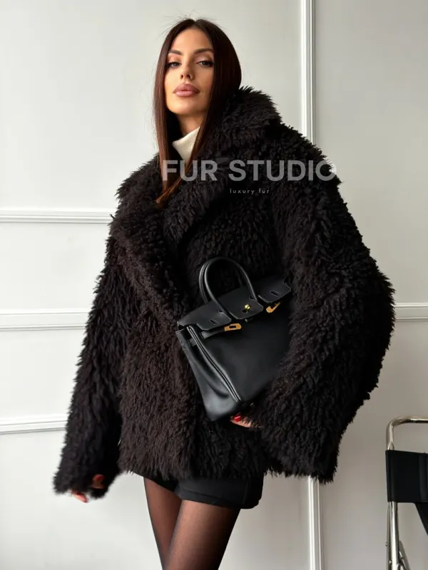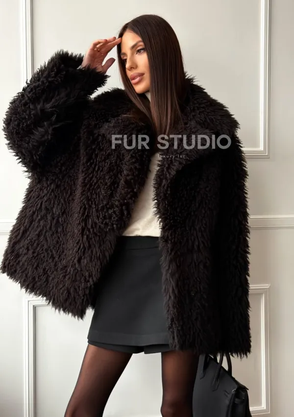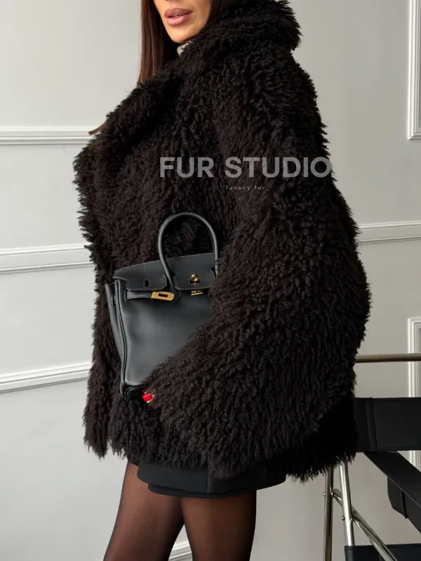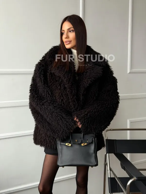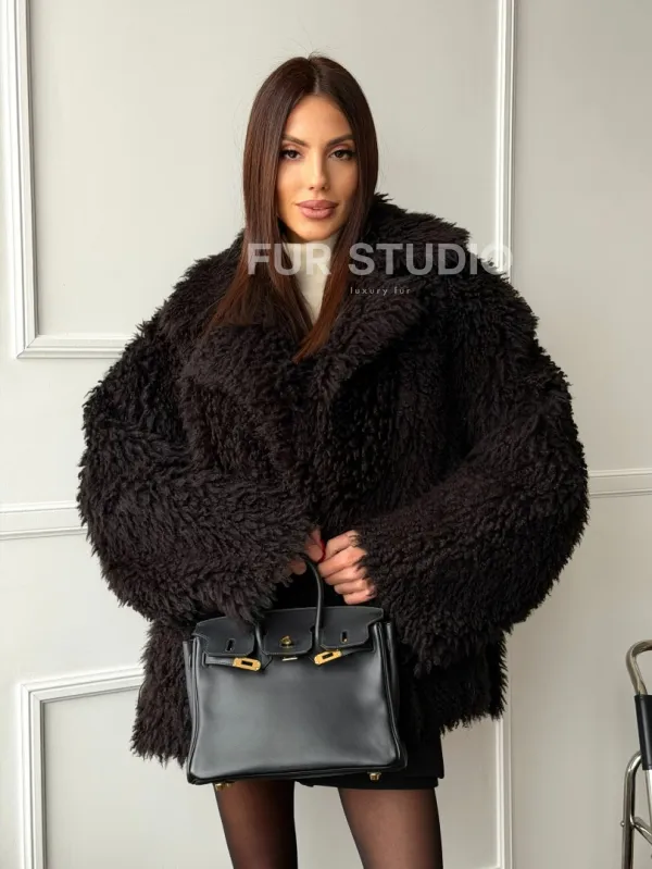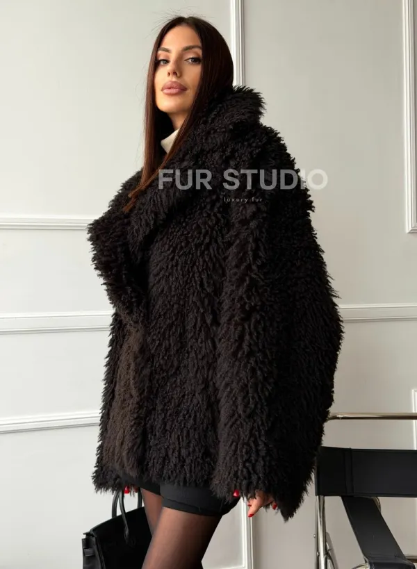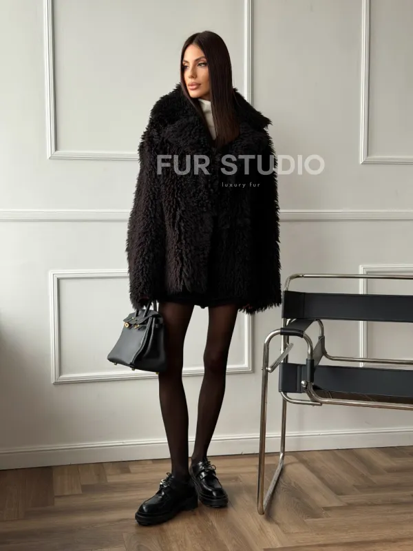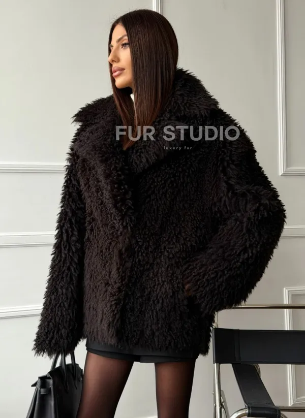 Коричневая дубленка из меха Тиградо 102610