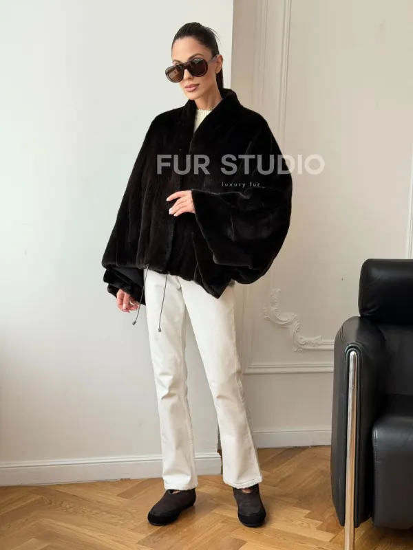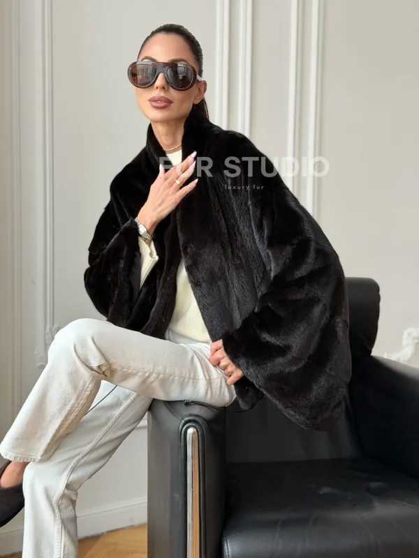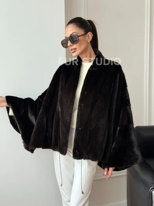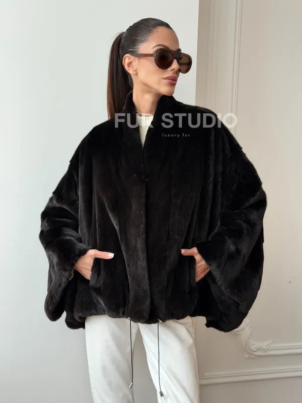 Короткая норковая шуба - пончо 102724