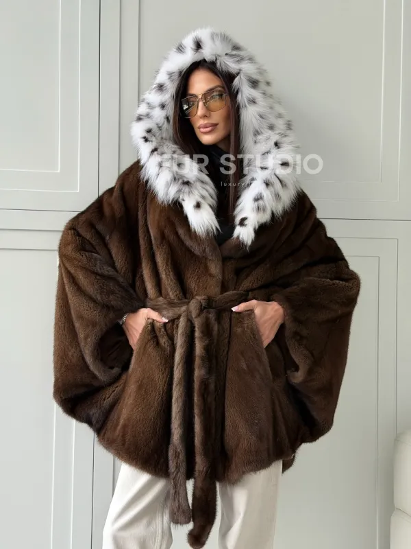 Норковая шуба с капюшоном по рысь 102819