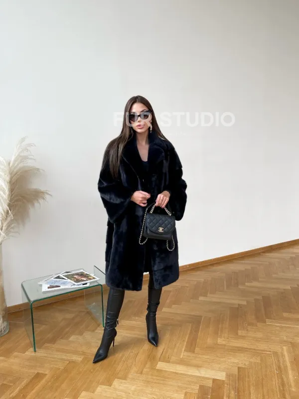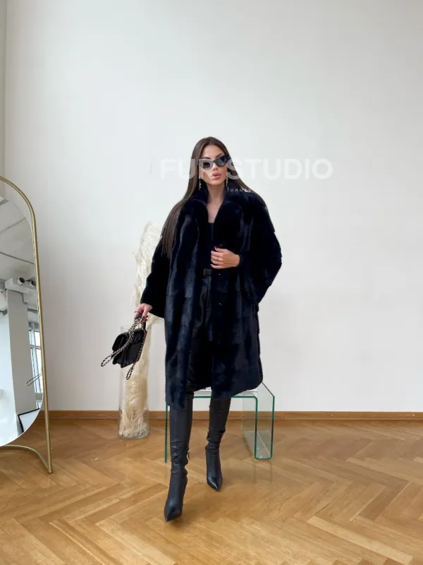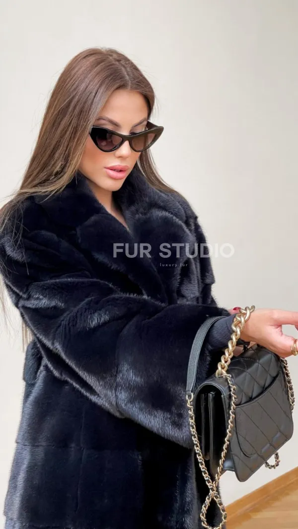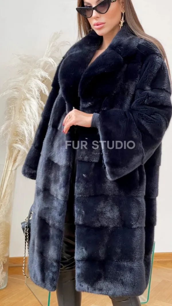Мех данной шубы аукционная норка , цвет синий. Предлагается в размерах от 48 до 50. Длина модели 95-100 см, что выгодно подчеркивает фигуру девушек. Эта модель идеально подойдет для девушек и женщин, предпочитающих роскошные натуральные меха.