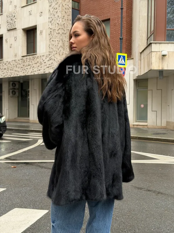 Мех данной шубы аукционная норка, цвет черный. Предлагается в размерах от 46 до 60. Длина модели 75-80 см, что выгодно подчеркивает фигуру девушек. Эта модель идеально подойдет для девушек и женщин, предпочитающих роскошные натуральные меха.