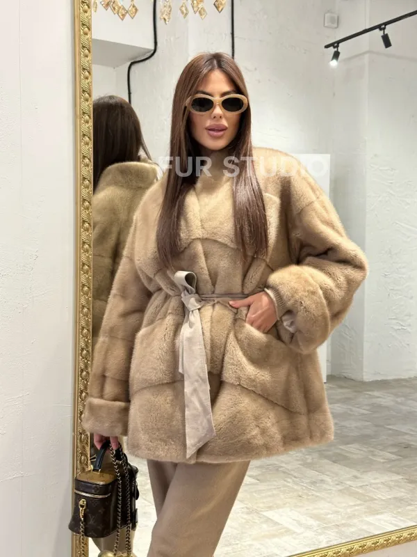 Длина оптимальна и комфортна в носке. Роскошный воротник выделяет изгибы шеи и не согреет в непогоду. Необычный пояс очертит талию и сделает ее тоньше. Модель сочетается с любым гардеробом: от классического стиля до вечерних нарядов. Купить полушубок из меха норки в цвете пастель могут женщины, которые обладают изысканным и тонким вкусом стиля.