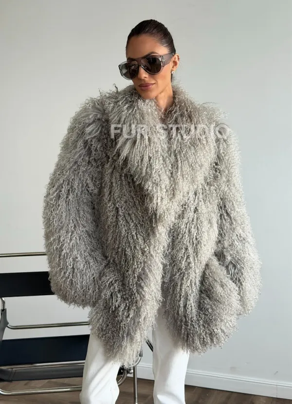 Серая шуба из ламы 102611