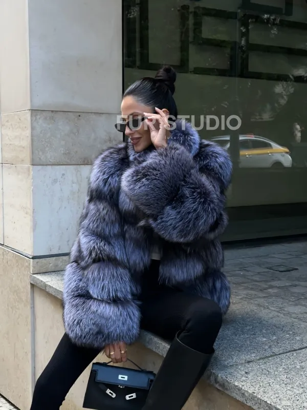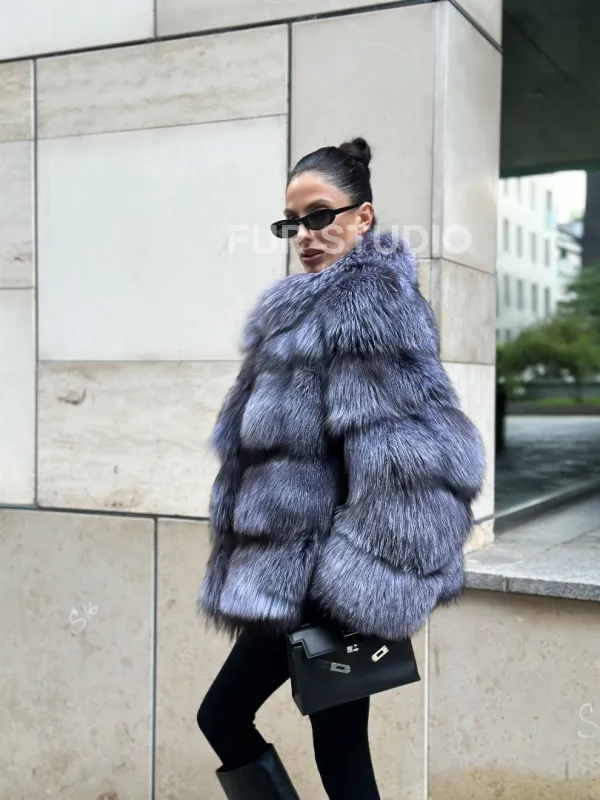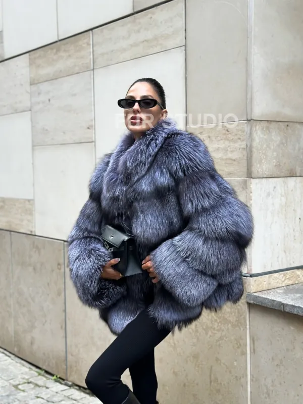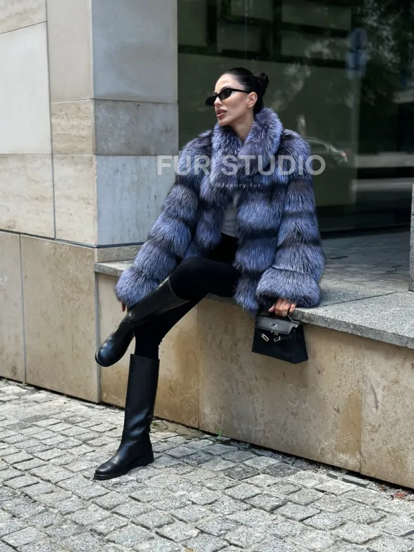 Мех данной шубы лиса, цвет серый. Предлагается в размерах от 42 до 50. Длина модели 60-65 см, что выгодно подчеркивает фигуру девушек. Эта модель идеально подойдет для девушек и женщин, предпочитающих роскошные натуральные меха.