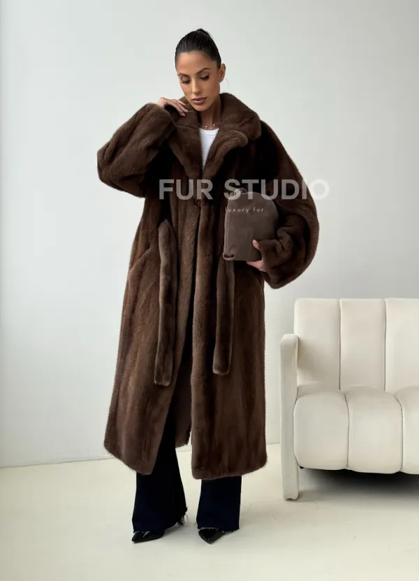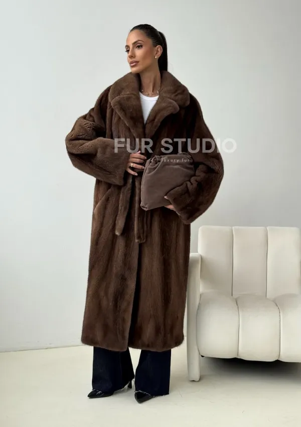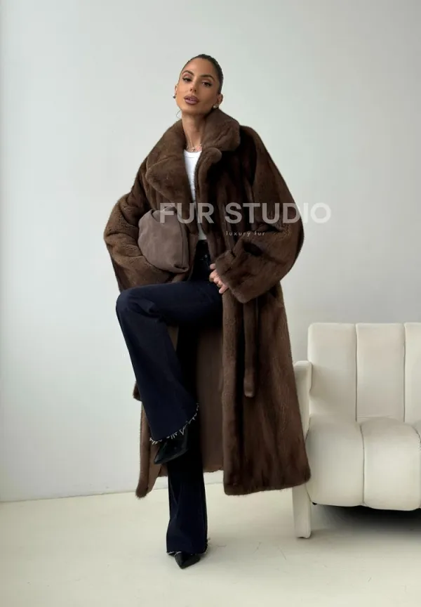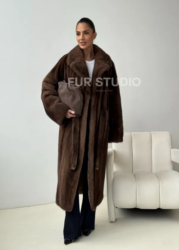 Мех данной шубы аукционная норка , цвет коричневый. Предлагается в размерах от 42 до 54. Длина модели 115-120 см, что выгодно подчеркивает фигуру девушек. Эта модель идеально подойдет для девушек и женщин, предпочитающих роскошные натуральные меха.