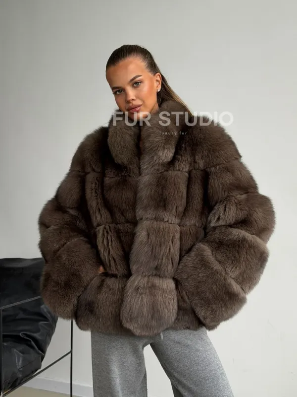 Мех данной шубы финский песец, цвет коричневый. Предлагается в размерах от 42 до 46. Длина модели 60-65 см, что выгодно подчеркивает фигуру девушек. Эта модель идеально подойдет для девушек и женщин, предпочитающих роскошные натуральные меха.