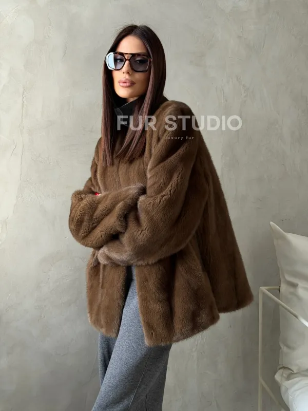 Мех данной шубы аукционная норка , цвет коричневый. Предлагается в размерах от 42 до 50. Длина модели 65-70 см, что выгодно подчеркивает фигуру девушек. Эта модель идеально подойдет для девушек и женщин, предпочитающих роскошные натуральные меха.