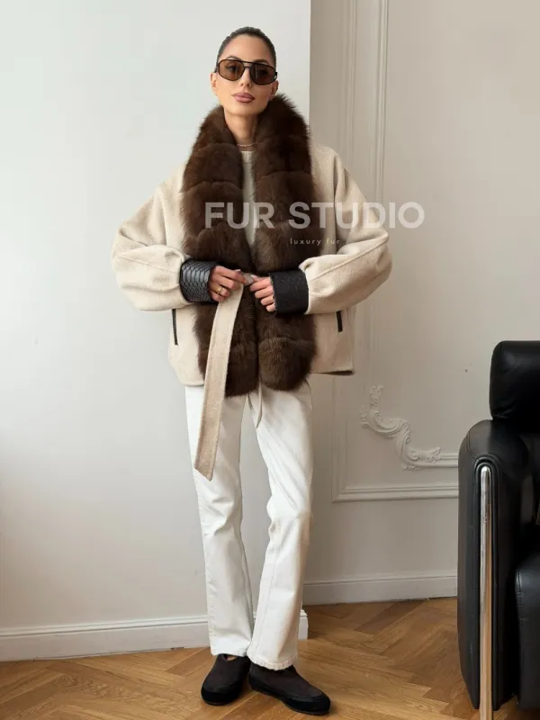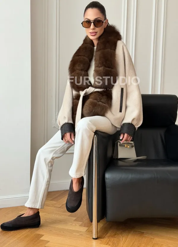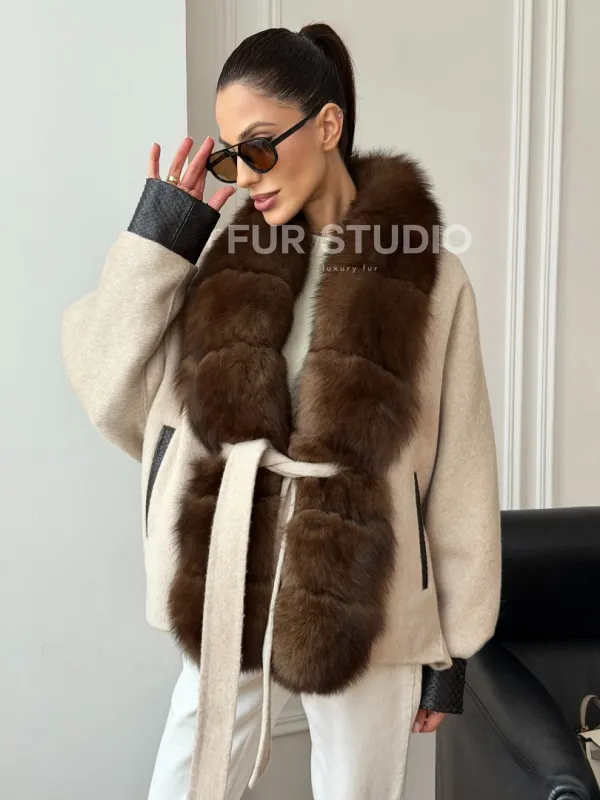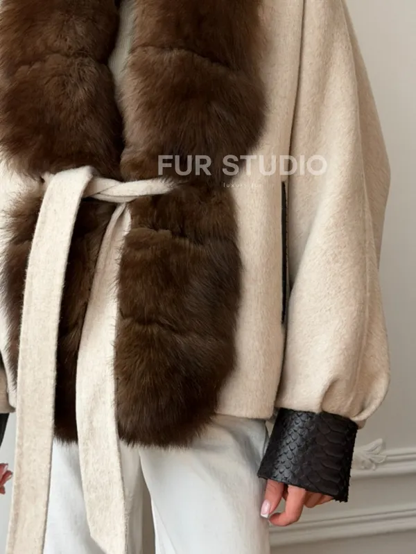 Женское шерстяное полупальто с мехом 102710